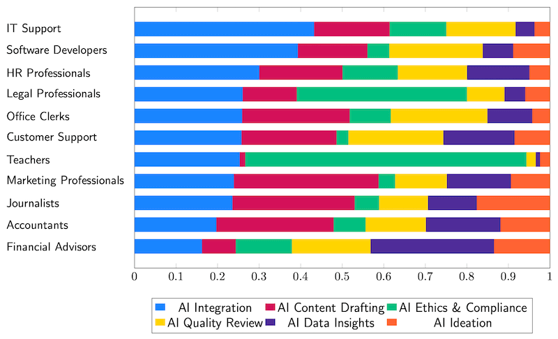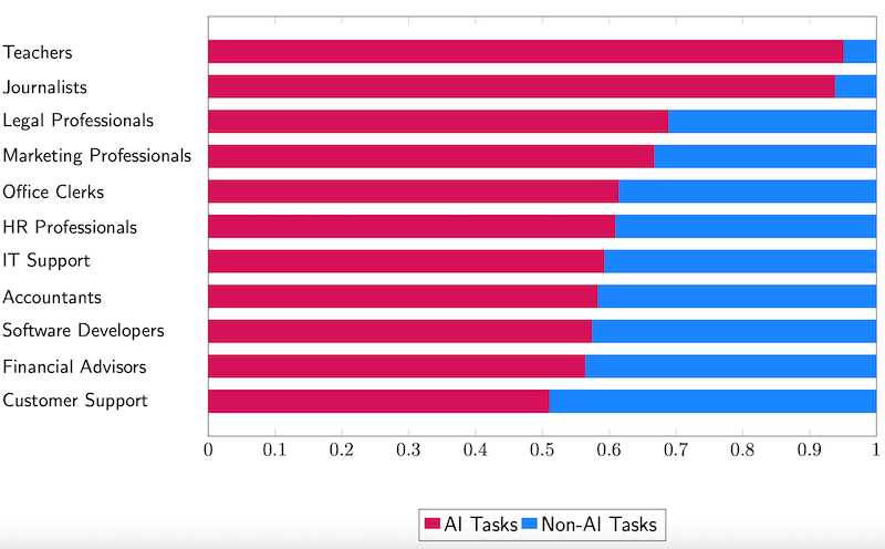 To co rzuca się szczególnie w oczy, że duńscy nauczyciele tak intensywnie używają AI do pracy. Pozycja dziennikarzy raczej mnie nie zaskakuje (choć myślałem, że będą pierwsi).
