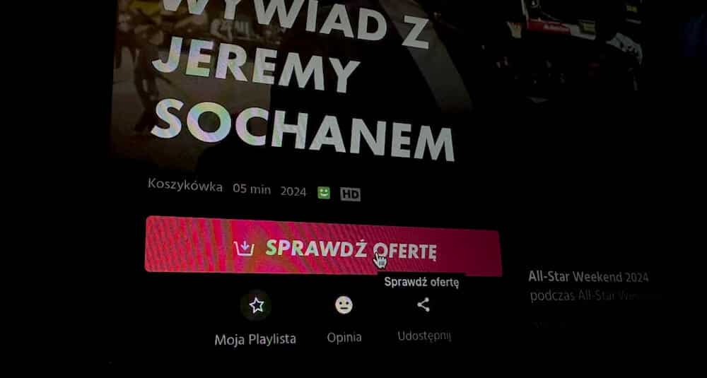 Na dzisiaj sytuacja wygląda tak, że nie mogę oglądać programów sportowych, seriali oraz filmów. Zamiast przycisku „Oglądaj” mam przycisk „Sprawdź ofertę”.
