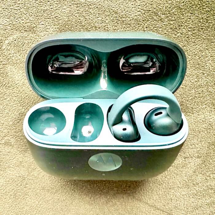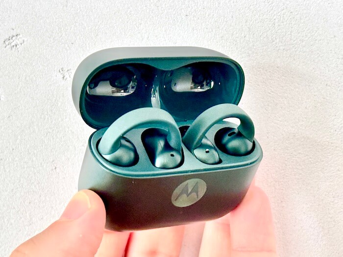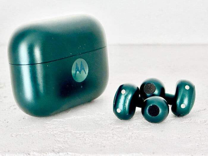 Moto Buds Loop zakłada się na ucho – nie wciska do kanału, dzięki czemu nie męczą nawet przy długim noszeniu. Uchwyt jest stabilny i trzyma mocno. Słuchawki praktycznie nie mają tendencji do wypadania. Można w nich chodzić, pracować, skakać czy biegać pobiegać.