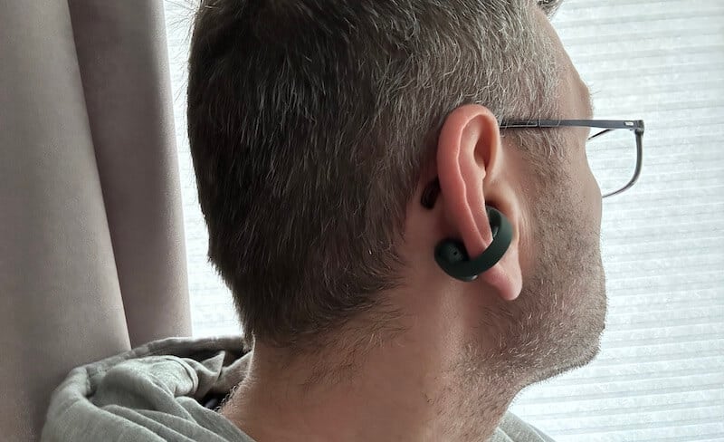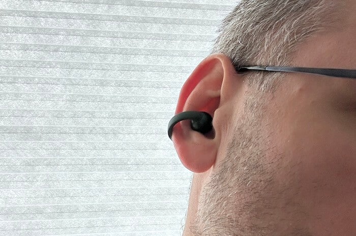 - Typ: TWS, konstrukcja open-ear (zakładane na ucho jak „ear-cuff”)