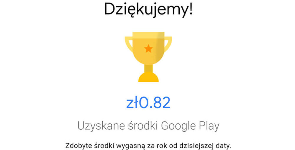 Google zapewnia, że każdy użytkownik za wypełnianie ankiet będzie mógł otrzymywać premię do 4 zł za jedną ankietę. Stawka za poszczególną ankietę będzie zależała od jej długości i czasu przeznaczonego na jej wypełnienie. Zarobione w ten sposób środki będzie można wykorzystać do zakupu gier, aplikacji czy filmów w Google Play. Warto jednak podkreślić, że jeżeli zdobytych premii nie wykorzystamy w ciągu roku, stracimy je bezpowrotnie.